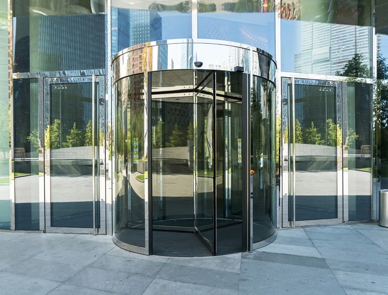 Automatische Drehtüren verbinden Design mit hoher Energieeffizienz. Wir übernehmen Planung, Montage und Wartung automatischer Drehtüren nach aktuellen Sicherheitsstandards.