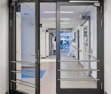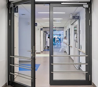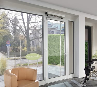 Zusätzlich sorgen integrierte Sicherheitsfunktionen wie Not-Stopp-Systeme, Drehzahlüberwachung und geprüfte Steuerungen für einen zuverlässigen Betrieb im Alltag. In Verbindung mit normgerechter Planung und fachgerechter Installation bieten automatische Drehtüren ein hohes Maß an Sicherheit für Nutzer und Betreiber – sowohl im normalen Betrieb als auch in Ausnahmesituationen.